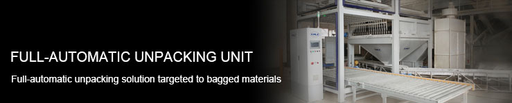 The full-automatic unpacking unit made by Kaiwei Company adopts international advanced design concept, combines the actual conditions of China, bases on loaded pallet as unit, performs multiple bag grabbing and breaking, material/loaded pallet/waste bag collection etc. It has features of high automatic degree, high operating efficiency, good reliability and less material dissipation etc., so it is applicable to rapid loading and warehousing of massive bagged materials. |